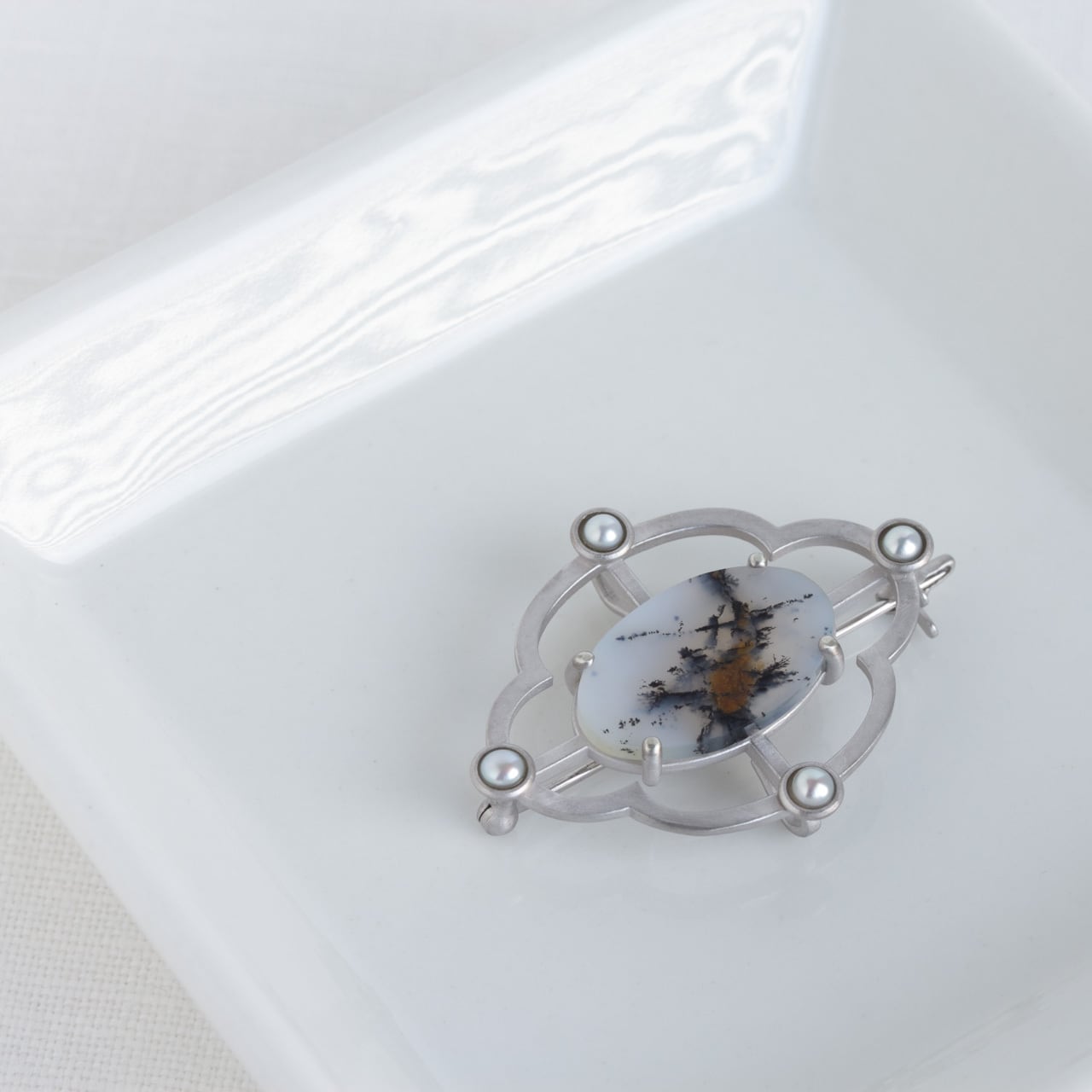 デンドリチック・アゲートが作り出す、墨絵のような世界観が美しいブローチ「monochrome」